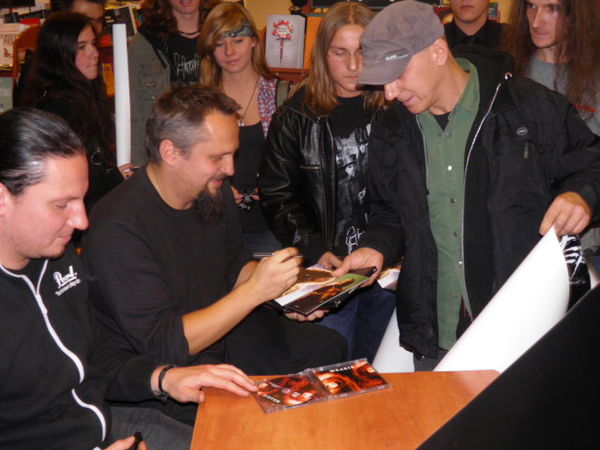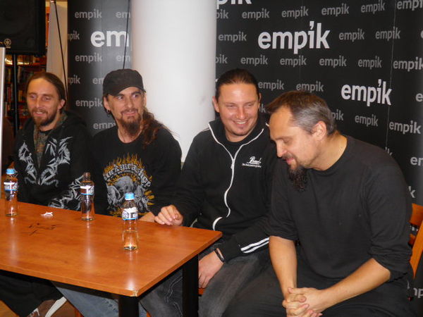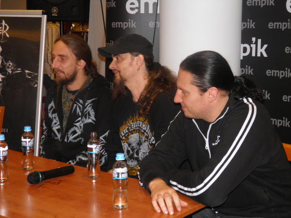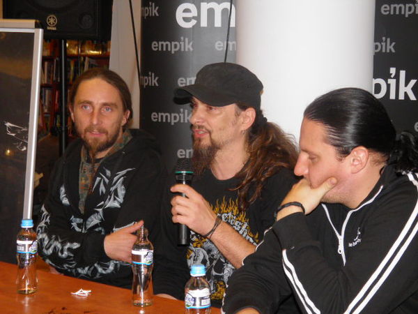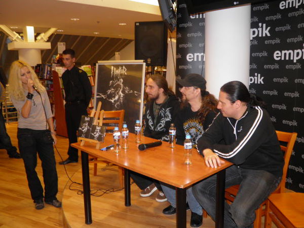 Okazją do spotkania była przede wszystkim promocja dwóch wydawnictw „HUNTER-XXV lat później” (wydanych w formacie CD i DVD). Członkowie grupy opowiadali m.in. o kulisach pracy nad tymi płytami i szeroko zakrojonych planach dotyczących ich kolejnego albumu. Zdradzili też jakie dotychczasowe koncerty wspominają najlepiej, który występ należał do tych najgorszych i gdzie przyszło im zagrać w wersji „bez prądu”. Mówili także o tym dlaczego nie będzie już Hunter Fest, o swoich fanach, zajęciach poza graniem w zespole, o współpracy z Acid Drinkers oraz o swoich pseudonimach. - Nie musiałem szukać pseudonimu, zawsze byłem zezwierzęcony. A prywatnie lubię kotki pieski i patyczaki- śmiał się Michał Jelonek, skrzypek zespołu.